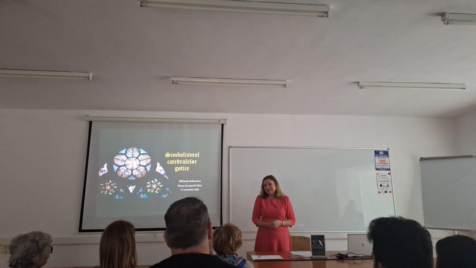 Vineri, 17 octombrie 2025 a avut loc la Info Center Sibiu conferința „Simbolismul catedralelor gotice”. Prelegerea a fost o ocazie de a afla cum au luat naștere marile catedrale gotice și de a cunoaște arta simbolică care le-a înnobilat. Spațiu sacru al luminii care unește omul cu divinitatea, catedrala exprima drumul ființei umane de la vest către lumina soarelui. Cele trei părți ale catedralei sunt corelate cu cele trei aspecte ale ființei umane, iar coloanele cu nervuri, care se deschid în rozete și bolți înalță sufletul uman spre dimensiunile sacre. Capodopere ale arhitecturii, ele continuă să străbată veacurile veghind asupra orașelor și amintindu-ne că în mijlocul unor vremuri întunecate, putem să ne înălțăm privirea spre cer, unde găsim inspirația de a realiza lucruri înălțătoare.