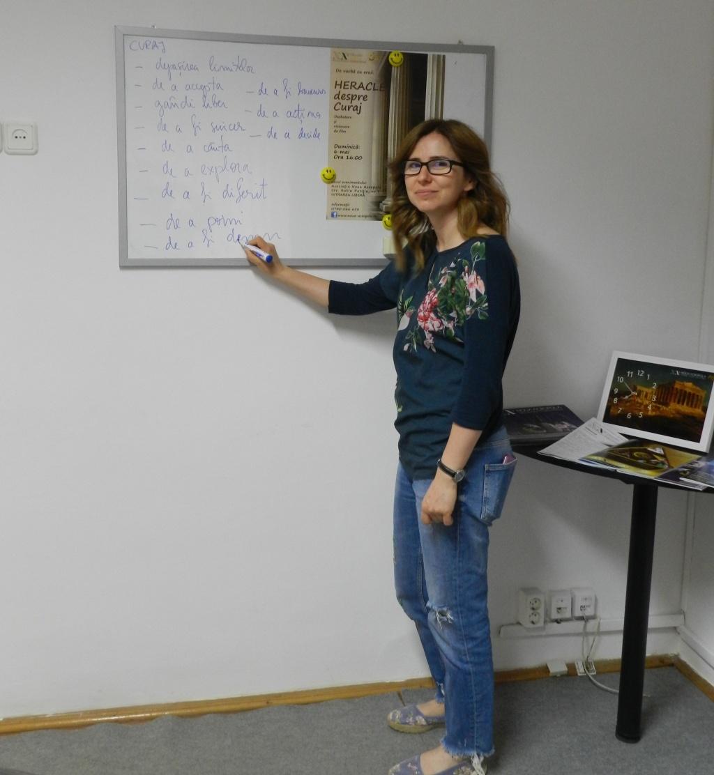 Încă din toamna trecută am început să organizăm dezbateri filosofice pe diverse teme, pornind de la ideile marilor filosofi. Aceste activități s-au bucurat de un mare interes din partea publicului clujean și ne-a oferit oportunitatea să readucem în actualitate concepte ca libertatea interioară, curaj, dreptate, dragoste și multe altele. Am stat până acum De vorbă cu Platon despre: suflet, dreptate, dragoste și fericire, dar și cu filosofii stoici Marcus Aurelius, Seneca și Epictet, iar in continuare am pregătit o serie de discuții despre valorile eroilor mitologici din diverse culturi.