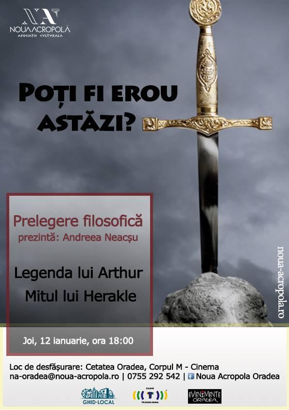 În 12 ianuarie s-a desfășurat la Cetatea Oradea o conferință despre eroism în actualitate. Au fost prezentate două teme esențiale în spațiul european: legenda regelui Arthur și mitul lui Heracle. În cadrul prezentărilor au fost oferite câteva interpretări bazate pe filosofie despre mesajul cuprins în evenimentele celor două tematici și a felului în care eroismul poate fi trăit astăzi în viața de zi cu zi.