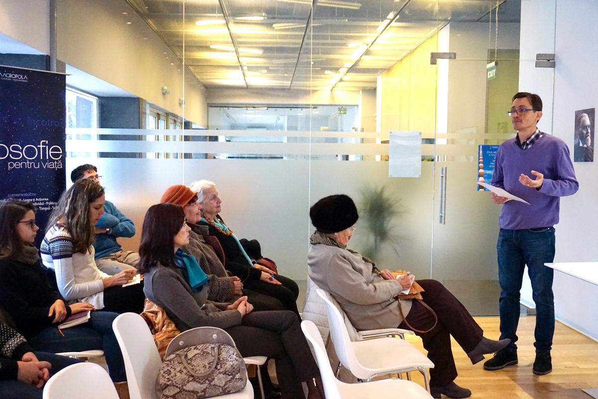 În noiembrie 2018 am aniversat Zilele Filosofiei și la Constanţa, în parteneriat cu Centrul Cultural Teodor T. Burada. Evenimentul Valori Filosofice Româneștia fost susținut la Centrul Cultural pentru Tineret Jean Constantin și a debutat cu o conferință pe tema: Filosofie pentru Viitor. Trecând prin momente cheie din istoria filosofiei – presocratici, platonism, neoplatonism, renaștere, filosofia modernă – am constatat că rămân actuale dorința omului de a înțelege universul în care trăiește, precum și cauzele profunde ale propriei vieți. Astfel filosofia este un demers atemporal spre discernământ și armonie între gânduri, sentimente și acțiuni.
